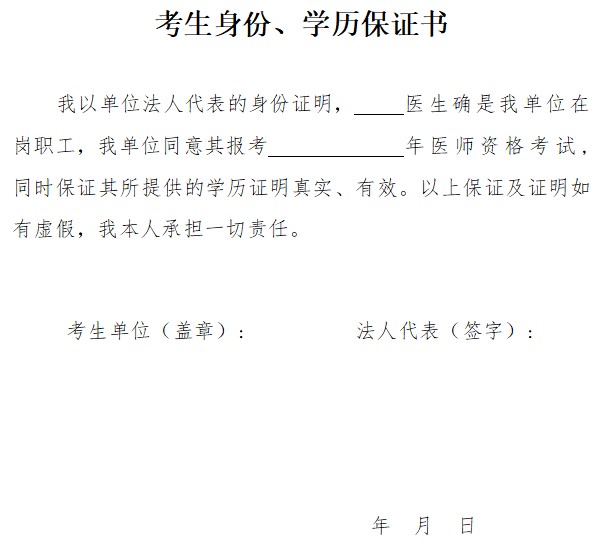 2022年醫(yī)師資格考試報名考生身份、學(xué)歷保證書樣本下載