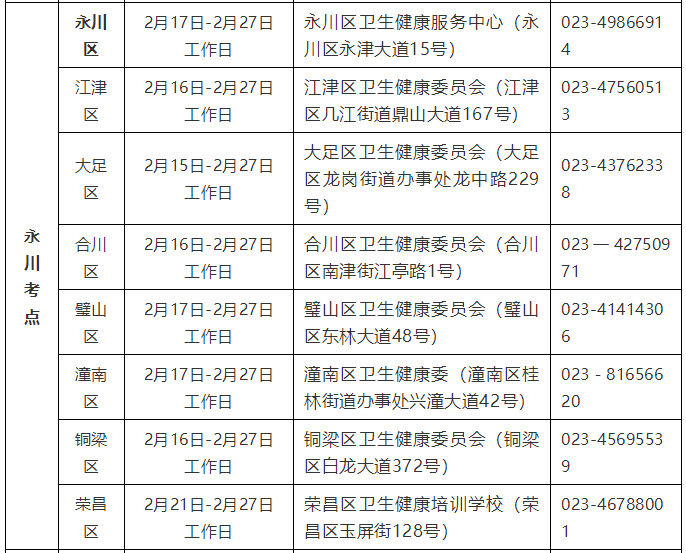 重慶考區(qū)永川考點2022年醫(yī)師資格報名現(xiàn)場審核起止時間