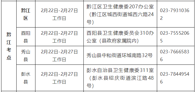 2022年臨床執(zhí)業(yè)醫(yī)師考試報名重慶黔江考點現(xiàn)場審核地點/時間
