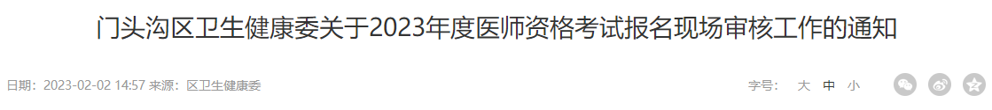 北京門頭溝區(qū)2023年臨床執(zhí)業(yè)醫(yī)師資格考試報(bào)名現(xiàn)場(chǎng)審核工作的通知