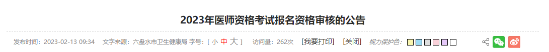 六盤水市衛(wèi)生健康局關(guān)于“2023年醫(yī)師資格考試報(bào)名資格審核的公告”!醫(yī)學(xué)教育網(wǎng)小編專門整理了六盤水發(fā)布的官方通知如下,請相關(guān)考生及時(shí)查看!