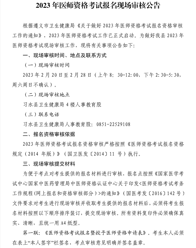 遵義市習(xí)水縣2023年醫(yī)師資格考試報(bào)名現(xiàn)場(chǎng)審核2月28日截止!