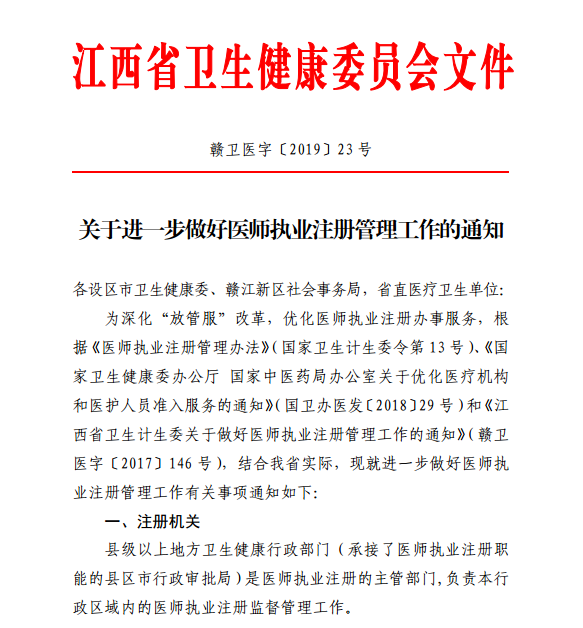 江西省南昌市委建委轉(zhuǎn)發(fā)江西省衛(wèi)生健康委《關于進一步做好醫(yī)師執(zhí)業(yè)注冊管理工作的通知》,為方便大家了解,在此醫(yī)學教育網(wǎng)小編為大家整理如下內(nèi)容: