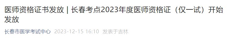 發(fā)證啦!吉林長(zhǎng)春2023臨床執(zhí)業(yè)醫(yī)師(一試)證書開始發(fā)放!