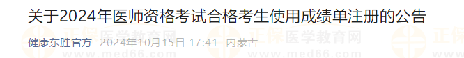 2024年醫(yī)師資格考試合格考生使用成績單注冊的公告
