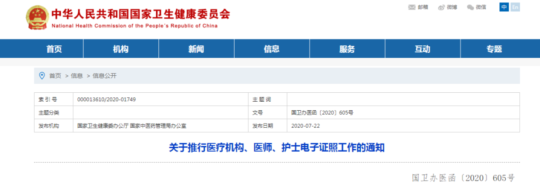 相關(guān)鏈接:國家衛(wèi)健委關(guān)于推行醫(yī)療機構(gòu)、醫(yī)師、護士電子證照工作的通知