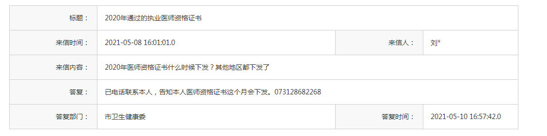 株洲市衛(wèi)健委回答:醫(yī)師資格證書這個月會下發(fā)。073128682268