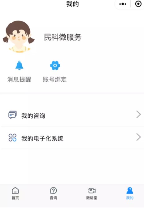 1、在民科微服務(wù)小程序【我的】中,點(diǎn)擊【我的電子化系統(tǒng)】