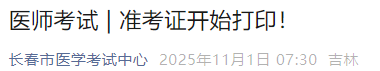 吉林長春2025年臨床執(zhí)業(yè)醫(yī)師(二試)考生速去打印準(zhǔn)考證!請相關(guān)考生盡快完成準(zhǔn)考證打印,提前確認(rèn)考場安排,做好應(yīng)試準(zhǔn)備!