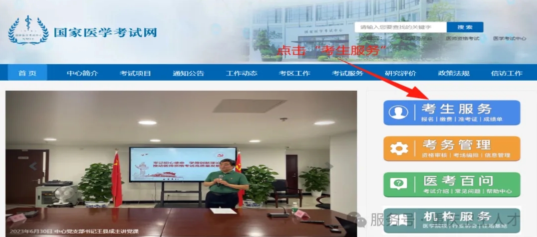 ?考生登錄國(guó)家醫(yī)學(xué)考試網(wǎng),進(jìn)入“考生服務(wù)”。