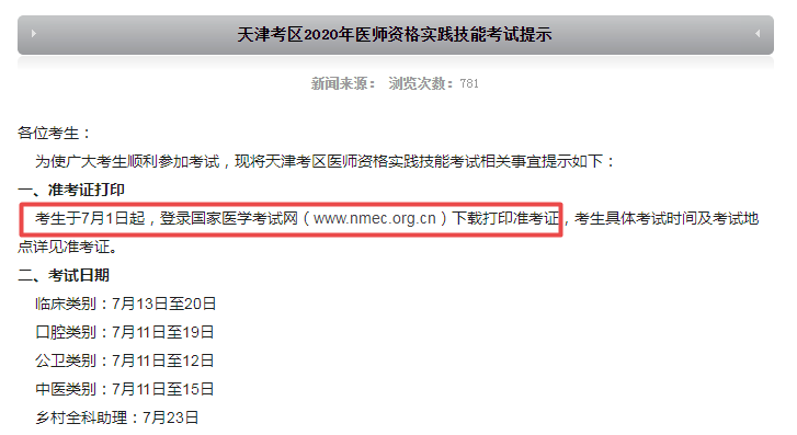 天津衛(wèi)生人才網(wǎng)最新通知2020年臨床執(zhí)業(yè)醫(yī)師技能準(zhǔn)考證7月1日開(kāi)始打印
