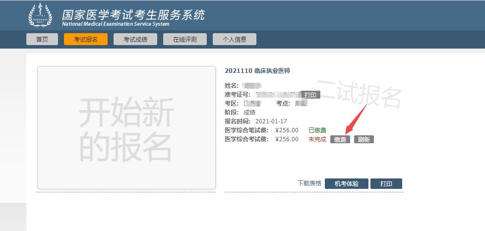全國2021年臨床助理醫(yī)師考試二試網(wǎng)上繳費步驟說明