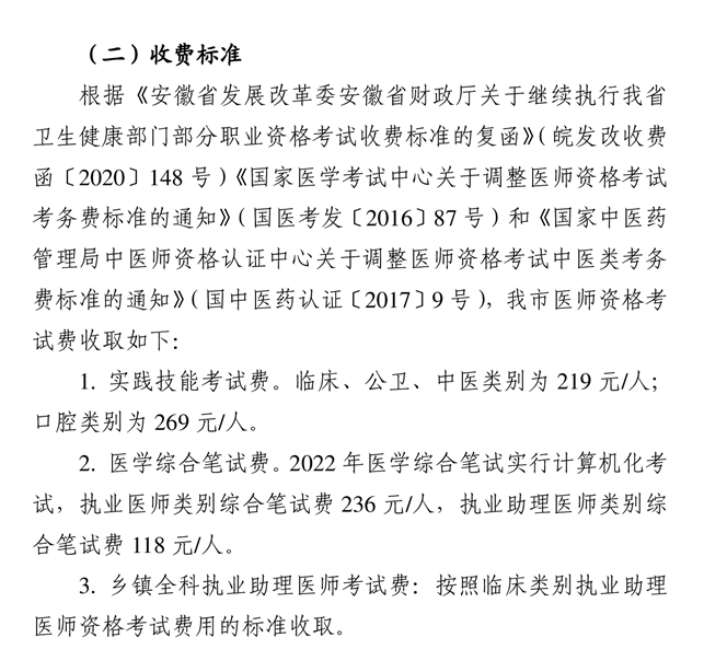 馬鞍山考點(diǎn)2022年臨床助理醫(yī)師考試收費(fèi)形式和收費(fèi)標(biāo)準(zhǔn)!