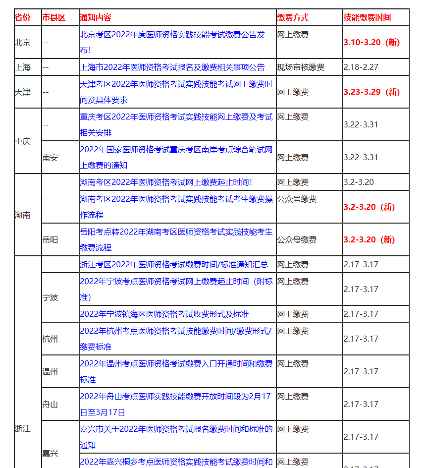 2022年醫(yī)師資格實(shí)踐技能繳費(fèi)各地通知匯總