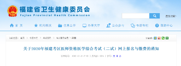 2020年福建考區(qū)臨床助理醫(yī)師考試(二試)網(wǎng)上報(bào)名與繳費(fèi)的通知