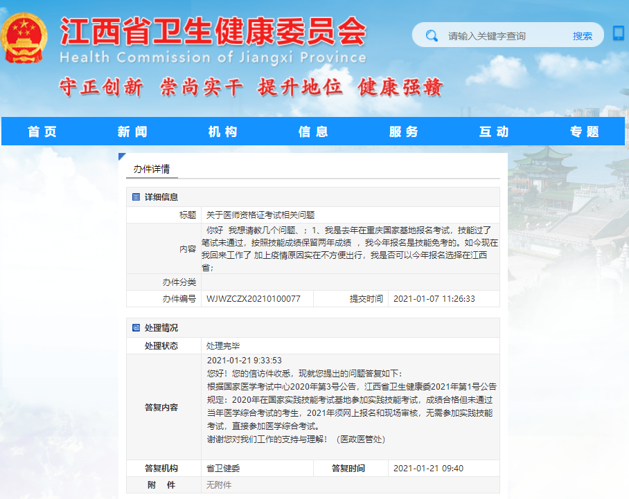 江西衛(wèi)健委:醫(yī)師資格考試報(bào)名去年在技能基地考試通過,今年換地區(qū)報(bào)名還能技能免考嗎?