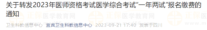 四川宜賓2023臨床助理醫(yī)師(二試)安排已出:9月22日開始報名!四川省轉(zhuǎn)發(fā)2023年醫(yī)師資格考試醫(yī)學(xué)綜合考試“一年兩試”報名繳費的通知!請各位考生相互轉(zhuǎn)告,別錯過報名繳費時間哦!