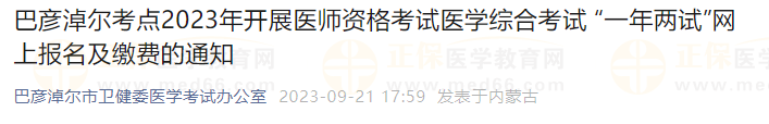 內(nèi)蒙古巴彥淖爾考點2023年醫(yī)師資格“一年兩試”考試報名及繳費9月22日開始,28日截止!準備參加二試考試的考生可進入系統(tǒng)進行報名及繳費!具體內(nèi)容整理如下: