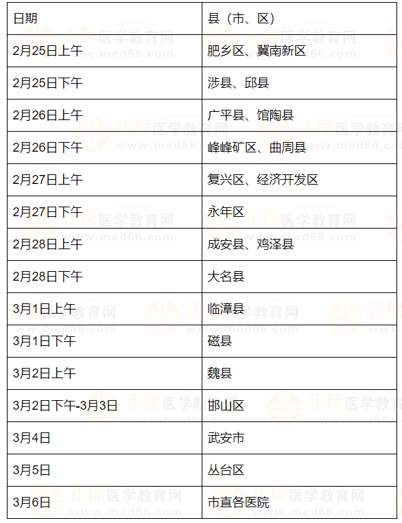 河北邯鄲2025年臨床助理醫(yī)師考試現(xiàn)場審核時(shí)間安排