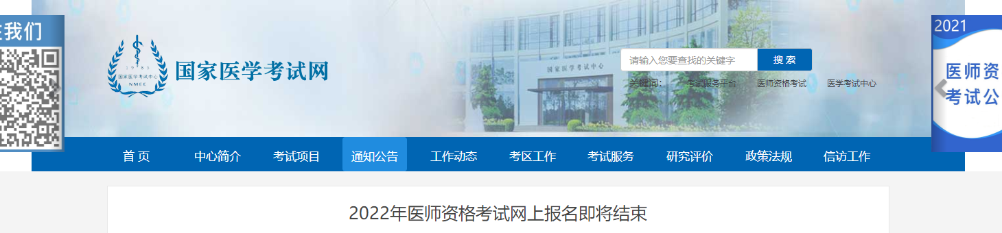 國家醫(yī)學(xué)考試網(wǎng)溫馨提示:2022年醫(yī)師資格考試網(wǎng)上報名即將結(jié)束!