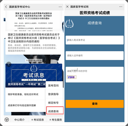 ②通過(guò)國(guó)家醫(yī)學(xué)考試中心公眾號(hào)查詢成績(jī):