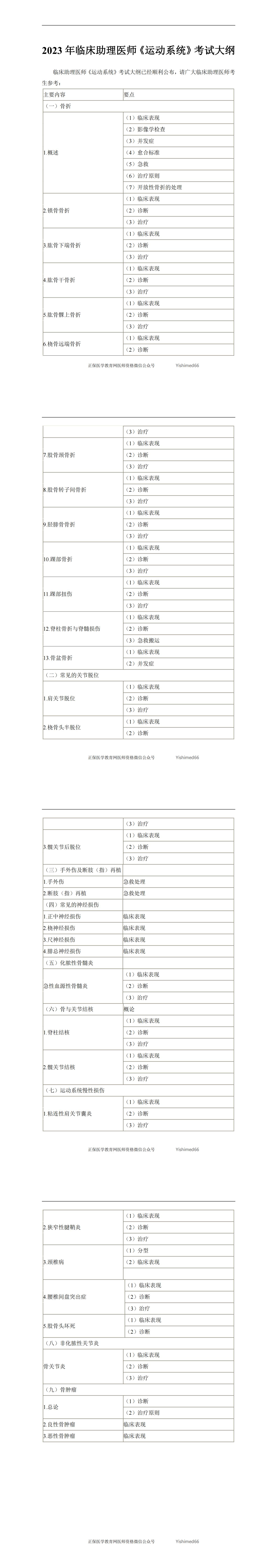 2023年臨床助理醫(yī)師綜合筆試《運動系統(tǒng)》考試大綱免費下載