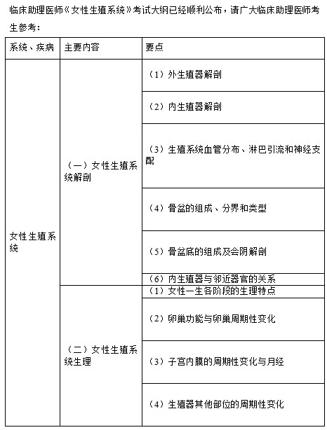 2022年臨床助理醫(yī)師《女性生殖系統(tǒng)》考試大綱已發(fā)布!無變化