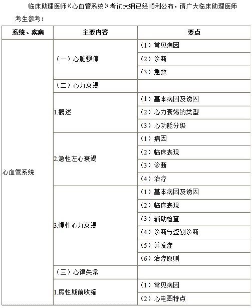 2022年臨床助理醫(yī)師《心血管系統(tǒng)》考試大綱已發(fā)布!無變化!