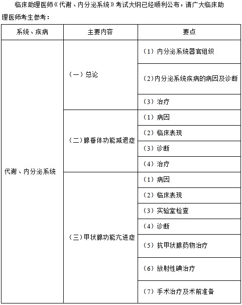 2022年臨床助理醫(yī)師《代謝、內(nèi)分泌系統(tǒng)》考試大綱發(fā)布!無變化