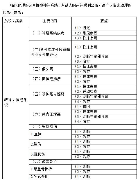 2022年臨床助理醫(yī)師《精神神經(jīng)系統(tǒng)》考試大綱已發(fā)布,沒變化!