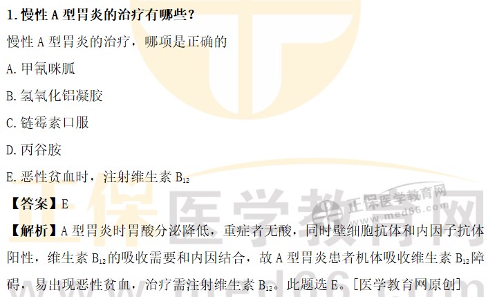 1.慢性A型胃炎的治療有哪些?