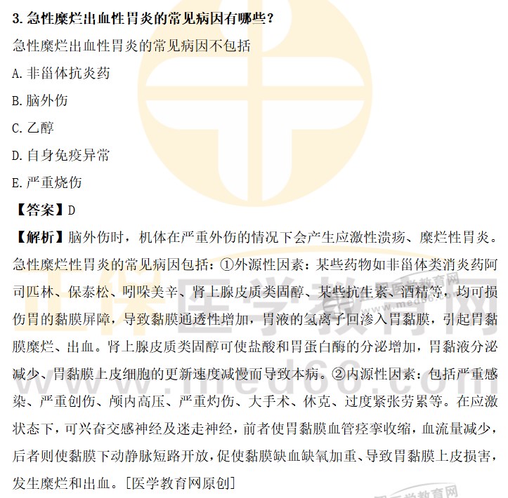 3.急性糜爛出血性胃炎的常見病因有哪些
