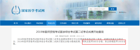 廣西2019臨床助理醫(yī)師二試合格標(biāo)準(zhǔn):180分