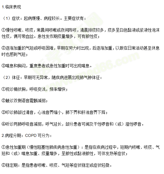 臨床助理“慢性阻塞性肺疾病的臨床表現(xiàn)、病程分期”考點