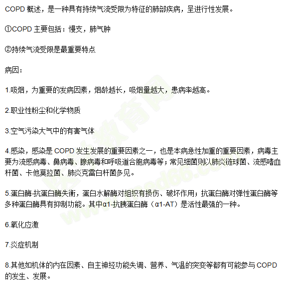 臨床助理“慢性阻塞性肺疾病的概述、病因和發(fā)病機(jī)制”考點(diǎn)