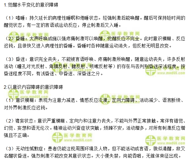 意識障礙臨床特點——臨床助理外科學(xué)實踐綜合考點