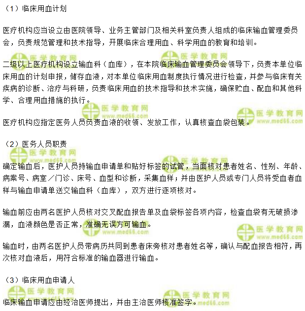 臨床助理醫(yī)師衛(wèi)生法規(guī):醫(yī)療機構臨床用血管理辦法考點
