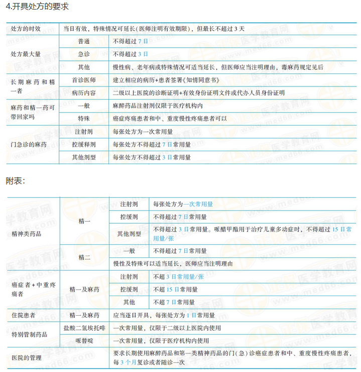(3)醫(yī)師經(jīng)考核合格后可取得麻醉藥品和第一類精神藥品的處方權;藥師經(jīng)考核合格后取得麻醉藥品和第一類精神藥品調劑資格。