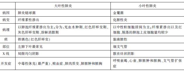 兩種肺炎的病理上的區(qū)別要對比記憶,另外大葉性肺炎具有典型的四期,注意其特點。