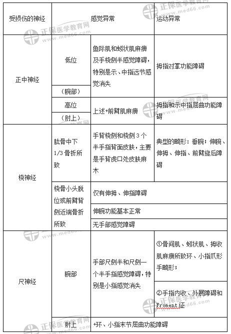 2020年臨床助理醫(yī)師考試運(yùn)動(dòng)系統(tǒng)“正中神經(jīng)、橈神經(jīng)及尺神經(jīng)損傷”考點(diǎn)