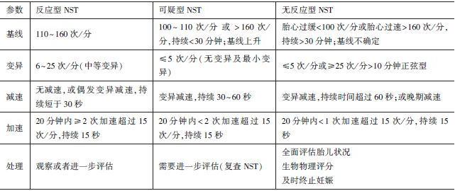 無(wú)應(yīng)激試驗(yàn)(NST):在無(wú)宮縮、無(wú)外界負(fù)荷刺激下,對(duì)胎兒進(jìn)行胎心率宮縮圖的觀察和記錄,以了解胎兒儲(chǔ)備能力。本試驗(yàn)根據(jù)胎心率基線(xiàn)、胎動(dòng)時(shí)胎心率變化(變異、減速和加速)等分為有反應(yīng)型NST、可疑型NST和無(wú)反應(yīng)型NST。