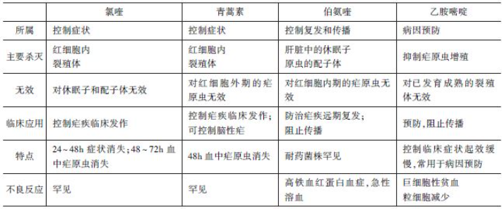重點掌握殺滅瘧原蟲的配子體、裂殖體的適用藥物,對控制復發(fā)、預防、傳播的適用藥物也要明確。