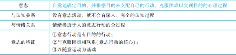 (1)概念:意志是自覺(jué)地確定目的,并根據(jù)目的來(lái)支配自己的行動(dòng),克服困難以實(shí)現(xiàn)目的的心理過(guò)程。
