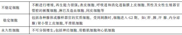 根據(jù)細胞再生能力將細胞做了三種分類,這三種細胞定義不必死記理解即可,但對其所代表的常見細胞要注意重點掌握。