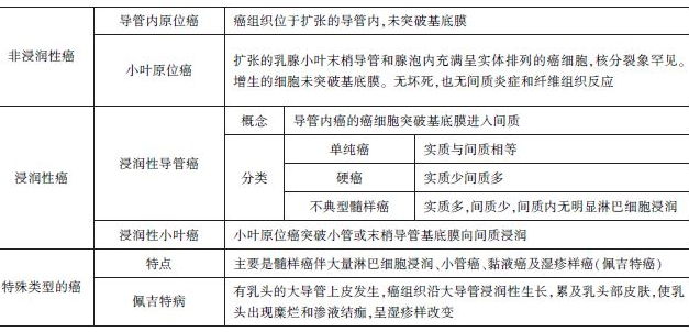 浸潤(rùn)性導(dǎo)管癌 單純癌:實(shí)質(zhì)與間質(zhì)相等;硬癌:實(shí)質(zhì)少間質(zhì)多;不典型髓樣癌:實(shí)質(zhì)多,間質(zhì)少,間質(zhì)內(nèi)無(wú)明顯淋巴細(xì)胞浸潤(rùn)。