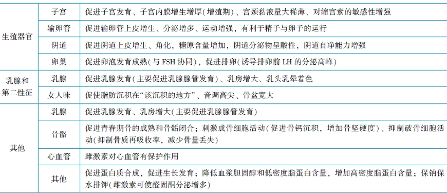 (1)雌激素的生理作用:①促進(jìn)女性生殖器官的發(fā)育;②促進(jìn)女性第二性征和性欲的產(chǎn)生;③對(duì)代謝的影響。
