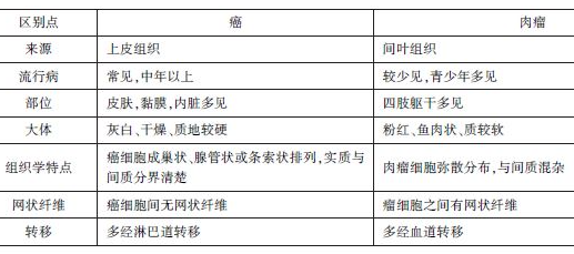 【答案解析】癌來(lái)源于上皮組織,肉瘤來(lái)源于間葉組織,這是癌和肉瘤區(qū)分的主要依據(jù)。