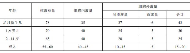 在嬰兒期,其體液總量(L)=0.7(70%)×體重(kg),細(xì)胞內(nèi)液最(L)=0.4(40%)×體重(kg),細(xì)胞外液量(L)=0.3(30%)×體重(kg)。