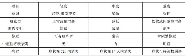 (2)12——24小時:患兒明顯激惹,部分患兒開始驚厥或發(fā)生呼吸暫停、顫動和近端肢體軟弱無力(上肢重于下肢)。擁抱反射亢進,哭聲尖而單調,深腱反射增強。