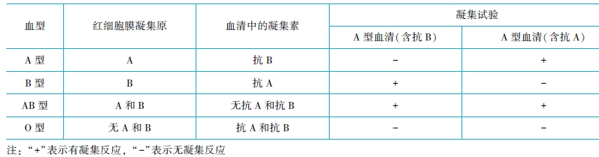 1.ABO血型系統(tǒng) 在ABO血型系統(tǒng)中,紅細(xì)胞膜上含有兩種不同的抗原,分別稱為A抗原和B抗原(凝集原)。在人類(lèi)血清中含有與其相對(duì)應(yīng)的兩種抗體,即抗A抗體和抗B抗體。根據(jù)紅細(xì)胞膜上所含ABO血型系統(tǒng)抗原的不同種類(lèi),將人類(lèi)血液分為四型:凡紅細(xì)胞膜上只含A抗原者為A型;只含B抗原者為B型;含有A、B兩種抗原者為AB型;既不含A抗原也不含B抗原者為O型。在同一個(gè)體血清中不含有與其自身紅細(xì)胞發(fā)生反應(yīng)的血型抗體(凝集素)。即在A型血的血清中,只含有抗B凝集素;B型血的血清中,只含有抗A凝集素;AB型血的血清中沒(méi)有抗A和抗B凝集素,而O型血的血清中則含有抗A和抗B凝集素。相關(guān)要點(diǎn)總結(jié)如下: